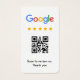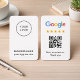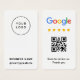 This clean, modern design features a minimalist two-sided layout with a logo placeholder, business name text, social handle, Google branding, five gold stars, and a scannable QR code. The crisp white background and simple black typography give it a polished professional look that suits salons, boutiques, service businesses, and small brands. Its uncluttered composition makes the review request clear and easy to read at a glance. This design appeals to businesses that want a sleek branded look while encouraging customer feedback in a stylish, straightforward way.