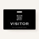 Keep your visitors and guests easily identified with this simple customizable QR visitor badge. The black and white design features space to upload your QR code and text that reads "Visitor" in a classic font. The QR code makes it easy for guests to access important information about your facility or event. The text at the bottom reminds visitors to please return the badge before leaving. This badge is perfect for businesses, hospitals, schools, museums, attractions, and more.