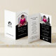 Modern & professional business cards for a wide range of businesses. The front of the card features a house-shaped photo frame for you to add your business photo portrait. Add your business slogan arch over the photo, as well as your name, job title, and website. The inside side features an optional services title and text. Add your logo to the back of the folded business card. Designed by Moodthology Papery