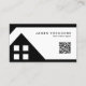 This modern real estate agent business card features a clean black and white layout with a bold geometric home design. The minimal composition creates a strong professional impression while keeping the focus on your name and contact details. A built-in QR code allows clients to quickly access your listings, website, or contact information with a simple scan.