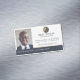 Modern and professional real estate magnet business card design with a photo placeholder incorporated into the design to display your own photo portrait. Clean, minimal layout design with stylish navy and gold real estate house logo that you can personalize with your business name or remove and replace with your own logo. Name and title are displayed prominently along the bottom within a navy blue stripe. Subtle faux gold accents are incorporated into the design to add an elegant professional look. Personalize with your contact information. You can change the background colour, font, font colour and layout to suit your personal preference. Logo design contained in this design are original artwork by moodthlogy.