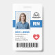 Create a stylish and professional ID badge for Registered Nurses. This customizable template features a clean, modern design with space for a photo, name, employee ID, location, title (RN), expiration date, and a barcode for added security. Easily personalize with your hospital or clinic logo, making it a perfect identification solution for healthcare professionals. This template is ideal for hospitals, clinics, nursing homes, and other healthcare facilities. The professional blue colour scheme creates a clean and trustworthy aesthetic.