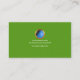 Design features a green trapezium at the right face with an underlying grey layer. This layer has the media icon buttons that connects to your business contacts. Northwards in a white rectangle column lies your prestigious name and job title. Near the midsection are the faux gold logo and its business name.