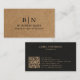 Professional Rustic Faux Kraft Initials & QR Code Business Card