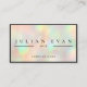 Elegant sparkly faux holographic background business card for both small business owners and large organizations. The design features a modern and minimalistic typography with simple but effective background. Perfect for a beautician or beauty salon owner, makeup artist, costume maker, hair stylist, or cosmetologist. NOTE: The holographic details are simulated in the artwork. There will be no actual holographic shine effects when printed.
