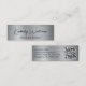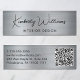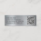 Elegant professional mini business card that features your name in a modern script on a brushed silver faux metallic background. Input your website's URL address to create a scannable QR code. On the reverse side, add additional text (such as email, telephone numbers, firm name and mailing address).