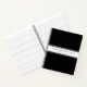 Modern notebook features a simple black and white design with custom name in a coordinating white banner with a complimentary grey stripe with black accents and text.