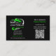 Professional Towing Company, Hauling Service Business Card. Featuring a tow-truck design. Green and Black. Personalize and add your business details. Add your QR code to your website. Also offering matching company shirts, magnets, and more for your business needs. Check out our store.