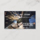 Business card featuring a welder at work. The rectangle around the phone number is a custom shape and can be adjusted to your needs (or deleted). The QR code is also optional and customizable. Beautiful for a professional welder or welding company.