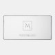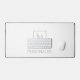 A professional white and grey desk mat with a simple modern square monogram and a template to personalize with a name.