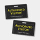 Cette conception de badge professionnel comprend le message "Visiteur autorisé !", ainsi qu'un nom de société personnalisable ou un autre message personnalisé. Il dispose également d'une frontière à une ligne. Un badge comme celui-ci pourrait être utilisé pour montrer que quelqu'un dans une entreprise ou un lieu de travail est un invité ou un visiteur autorisé. [~Z0000307]