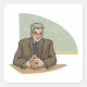 A professor sitting at his desk in a class. This design looks really effective on these Stickers