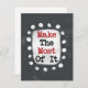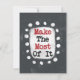 Le texte gras "Profitez-en" est centré sur un arrière - plan gris. Le texte noir est posé sur un rectangle blanc avec de grands points blancs texturés autour, offrant un contraste ludique sur le fond de couleur solide.
