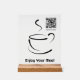 Il s'agit d'une simple conception dessinée à la main d'un café avec le message Profitez de votre repas. utilisez ceci dans votre restaurant ou café pour obtenir le paiement de vos clients. assurez-vous d'entrer votre code d'URL correctement et de les scanner pour s'assurer qu'il est correct.