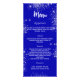 Birthday party program and menu. Personalize and add a name, age and your program. A royal blue background. White coloured letters. Decorated with faux silver glitter, sparkles.
