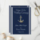 Une élégante carte de programme Ancre nautique - service Mariage, conçue en bleu et blanc de marine nautique classique, avec décorations d'Ancres et texte blanc. L'avant fournit les noms et la date du Mariage de la mariée et de la chambre, tandis que l'arrière répertorie votre ordre de service et votre message de Merci. Pour personnaliser, il suffit de remplacer l'exemple de texte en utilisant notre modèle facile. N'oubliez pas de consulter la collection de papier à lettres Mariage nautique dans son intégralité. Bon appétit !