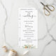 Élégante aquarelle botanique fleurs et feuillage blancs, verts et orange pêche, programme de mariage. Le programme comporte une calligraphie mignonne "mariage" avec plusieurs lignes pour des listes de texte personnalisées pour l'ordre des événements de la cérémonie, le cortège de mariage et le mot de remerciement.