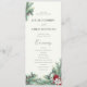 Guidez vos invités à travers la cérémonie avec notre programme de mariage de verdure aux baies et pins d'hiver, avec des branches de pin peintes à la main, des baies rouges et une verdure luxuriante — parfait pour les mariages d'hiver, de Noël ou de bois. Objets correspondants disponibles ! Trouvez des invitations de coordination, des cartes RSVP, des menus, et plus dans notre collection de Mariages d'hiver Berries & Pine d'aquarelle verte pour compléter votre gamme de papeterie de mariage d'hiver.
