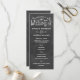 "Bienvenue au mariage de" brille en lettrage blanc charmant sur un fond d'ardoise rustique sur ce programme de cérémonie amusant. Un mélange de typographie ludique et élégante crée une atmosphère chaleureuse et accueillante, accentuée par des fioritures décoratives. L'avant et l'arrière de cette carte de programme plat sont entièrement personnalisables pour votre cortège, ordre de cérémonie et message de remerciement personnel.