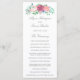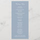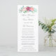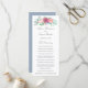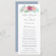 Programme de mariage romantique avec une guirlande fleurie composée de roses rose pastel et mauve. Vos cérémonies sont au premier plan et votre fête de mariage est à l'arrière sur un arrière - plan bleu poussiéreux. Ce design floral est idéal pour une fête au printemps.