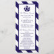 Ces programmes sont parfaits pour tout couple qui planifie un mariage romantique en bord de mer. Le design est orné d'un motif blanc marine bleu navire sur une marine nautique et un arrière - plan rayé blanc. La conception simple peut être personnalisée pour convenir à votre événement spécial et sera la commande parfaite de service pour toute soirée nautique sur la plage, y compris : douches nuptiales, fiançailles, wedding showers, fêtes d'anniversaire et bien plus encore.