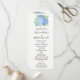 Ces programmes de mariage comprennent des fleurs d'hydrangée bleu aquarelle et un bouquet de feuillage. Le devant de la carte a la cérémonie et le dos de la carte liste la fête de la mariée. Ces programmes de mariage font partie d'une collection qui comprend une gamme complète de papeterie mariage correspondante que vous pouvez personnaliser pour votre mariage. Visitez les pages de collection de notre magasin pour voir la gamme complète.