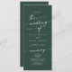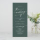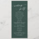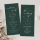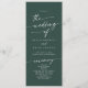 Ce programme de mariage chic émeraude vert émeraude est parfait pour une cérémonie mariage minimaliste. Le design bohème moderne et moderne de la forêt de chasseurs, sombre et maussade, se compose d'une calligraphie rustique simple au style unique mais classique. Personnalisez votre programme de mariage avec vos noms, la date du mariage, l'emplacement, l'ordre de service, la fête de mariage et optionnel en mémoire d'amour.