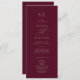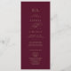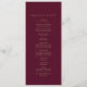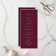 Ce programme de mariage romantique en calligraphie bordeaux est parfait pour un simple mariage. Le design classique moderne comprend des tourbillons fantaisistes et des fleurs fantaisistes avec une superbe élégante typographie de l'or en faux champagne. Inclure les initiales des couples, les noms du couple, la date et l'emplacement du mariage, le message de remerciement, l'ordre de service, la fête de mariage et un mémorial optionnel "en mémoire d'amour". Remarque : Ce design ne comporte pas de véritable feuille d'or. C'est un graphisme de haute qualité fait pour ressembler à du papier doré.