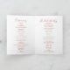 Ce programme de mariage floral gracieux calligraphie est parfait pour un mariage rustique. Le design présente une aquarelle dainty blanche, bordeaux, roses roses roses et feuilles d'automne. Incluez un devis ou un court message, une commande de service, une fête de mariage et un message de remerciement.
