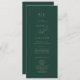 Ce programme de mariage romantique de monogramme calligraphie verte est parfait pour un simple mariage. Le design classique moderne comprend des tourbillons fantaisistes et des fleurs fantaisistes avec une superbe élégante typographie de l'or en faux champagne. Inclure les initiales des couples, les noms du couple, la date et l'emplacement du mariage, le message de remerciement, l'ordre de service, la fête de mariage et un mémorial optionnel "en mémoire d'amour". Remarque : Ce design ne comporte pas de véritable feuille d'or. C'est un graphisme de haute qualité fait pour ressembler à du papier doré.