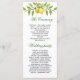 Programme Cérémonie de mariage élégante aux citrons et au fe