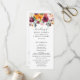 Cet élégant programme de cérémonie mariage de style rustique présente de belles fleurs d'été et d'automne, y compris des roses, dahlias, des fleurs de pivoine, et de la verdure, dans une magnifique palette d'automne de rouge bordeaux, jaune doré, orange pêche, rose roux, et des tons de vert. Personnalisez le texte gris foncé élégant des deux côtés de la carte avec votre cérémonie personnalisée, la fête de mariage et le libellé du message de remerciement.
