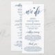 Nous le faisons, Elegant Modern Navy Blue typographie scénario thème de conception de script, carte de programme de cérémonie de Mariage. Il est conçu avec un accent de défilement qui peut être personnalisé avec du texte personnalisé/personnalisé pour votre fête de mariage, les détails de cérémonie, des notes commémoratives et un message de remerciement. Si vous cherchez d'autres types et tailles de cartes de programme, veuillez consulter notre section de collecte de cartes de programme correspondant.