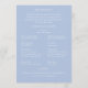 Chic et design. Élégant, mais simple. Ce programme de mariage comporte un message de bienvenue et des détails de programme entièrement modifiables dans un ensemble de polices contemporaines et d'illustration d'hydrangée. Le design est dressé contre un arrière - plan blanc éclatant à l'avant et un bleu poussiéreux à l'arrière. Très élégant et romantique avec des tons jeunes, ce design ajoute tout ce qu'il y a de spécial à votre grand jour. Personnalisez ce design unique pour en faire le vôtre.