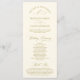 Élégant script Classy Gold, programme de cérémonie Mariage en carte 4x9 pouces (long). Il est conçu avec un accent de défilement qui peut être personnalisé avec du texte personnalisé/personnalisé pour votre fête de mariage, les détails de cérémonie, des notes commémoratives et un message de remerciement. Si vous cherchez d'autres types et tailles de cartes de programme, veuillez consulter notre section de collecte de cartes de programme correspondant.