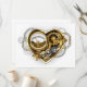 Coeur steampunk mécanique, volumétrique, avec manomètre, acier et or sur arrière - plan blanc. Style Steampunk.