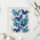 Vertical composition of réalistes, blue and white morpho butterflies on gray textured background. Morphine bleu.