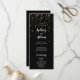 Ce confetti d'or | programme de mariage noir est parfait pour un mariage simple et élégant. Le design chic et fantaisiste présente des confettis de parties scintillant en faux or et une calligraphie minimaliste sur le noir avec une touche boho moderne.