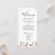 Ce programme d'accueil de mariage fleur sauvage boho brille par son look épuré et sa simplicité gracieuse. La typographie moderne et la calligraphie sublime sont accentuées par des fleurs sauvages colorés d'aquarelle. Ce programme d'accueil est à la fois fantaisiste et élégant, tout comme votre journée spéciale. ❤️ Customisez à votre coeur !