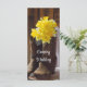 Annoncez l'ordre de votre cérémonie de mariage du printemps de mars, avril ou mai avec les jonquilles jaunes décontractées mais élégantes et le programme de mariage de la grange de l'Ouest du pays Cowboy Boots. Ce programme de mariage rustique et chic, personnalisé et décontracté, présente une photographie florale surannée de bottes de cow-boy en cuir marron remplies de fleurs de narcisses jaunes avec voile nuptial et de grange brune sur satin blanc. Idéal pour une visite ou une idée pour votre style de ranch décontracté ou cérémonie de mariage à la ferme.