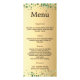 Programme de fête d'anniversaire et carte de menu. Personnalisez et ajoutez un nom, un âge, une date et le menu. Un arrière - plan à l'allure d'or. Décoré de confettis verts, texte noir.