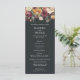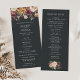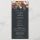 L'élégant programme de mariage rustique présente les détails de votre cérémonie en lettres blanches sur un riche arrière - plan off-black, avec vos noms surmontés de fleurs d'aquarelle peintes dans des tons d'automne riches de bordeaux, marsala, rose roux, ivoire et vert foncé. Reverse side liste les membres de votre mariage avec des champs de texte facilement modifiables. Coordonné avec notre collection d'invitation à mariage pour mariage de Lune Lumière Jardin pour les mariages chic d'automne ou d'hiver. Utilisez les champs modèle pour ajouter les informations de cérémonie et de fête de mariage, puis cliquez sur "Customiser" pour repositionner les éléments si nécessaire. Vous avez besoin d'aide ? Contactez-moi via le lien "Demandez à ce concepteur" sur cette page.