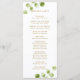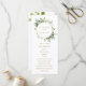 Ce programme de mariage présente une verdure d'eucalyptus peinte à l'aquarelle, des feuilles vertes avec un cadre circulaire doré. Pour une personnalisation plus avancée de ce design, veuillez cliquer sur le lien "Personnaliser davantage". Des articles assortis sont également disponibles.