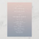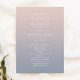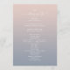 Simple Ombre Pink & Dusty Blue Mariage programme de cérémonie. Cette carte d'ordre des services minimaliste moderne est simple classique et élégant avec un dégradé subtil et une jolie police de calligraphie de script signature avec queues. Montré dans la nouvelle Colorway. Disponible en plusieurs options de couleur, ou n'hésitez pas à modifier les couleurs à partir de l'éditeur (cliquez sur customiser plus loin lors de la personnalisation). Pour en savoir plus, recherchez les collections mariages 2022 de Chic Paperie pour voir toutes les tendances design et couleurs mariages de cette année.