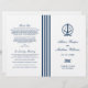 Le programme de cérémonie de mariage élégant comprend une ancre de bateau avec un monogramme de corde attachée et des détails de bande où les programmes doivent être pliés. Personnalisez le texte personnalisé bleu marine sur les pages avant et intérieure avec vos informations de cérémonie et message de remerciement. Remarque : ces programmes de papier poids texte arrivent à plat et nécessitent un pliage pour être assemblés. L'arrière - plan blanc peut être customisé.