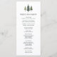 Notre programme hivernal et rustique de mariage chic comprend les détails de votre cérémonie surmonté d'un trio de pins dans les tons luxuriants du vert chasseur. Reverse side liste les membres de votre mariage avec des champs de texte facilement modifiables. Coordonné avec notre collection de faire-part de mariage de pins hautes. Utilisez les champs modèle pour ajouter les informations de cérémonie et de fête de mariage, puis cliquez sur "Customiser" pour repositionner les éléments si nécessaire.