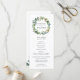 programme de cérémonie mariagedouble faceélégantprogramme de mariage de jardinverdurecouronne botaniquefeuilles eucalyptusfeuillage vert et blancvert sauge et bleu marine