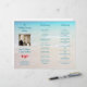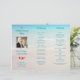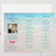Programme de cérémonie de mariage sur la plage plié en trois, avec modèle de photo et fleurs de plumeria. Eau turquoise et texte assorti sur une image de sable de plage avec photo carrée du couple, qui sera sur le devant de ce programme plié. **Veuillez noter que le dos de ce papier sera blanc - rien ne peut être ajouté au dos.