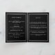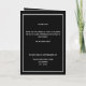 Un élégant programme de 4 pages. Un fond noir, un cadre argenté faux, et un espace pour votre photo sur la couverture. Personnalisez et ajoutez le nom, les dates et votre texte. Texte blanc.
