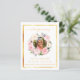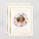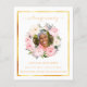 Un programme élégant de 2 pages. Un fond blanc, un cadre en faux or et un espace pour votre photo Décoré d'une couronne de fleurs roses et blanches. Personnalisez et ajoutez le nom, les dates et votre texte.